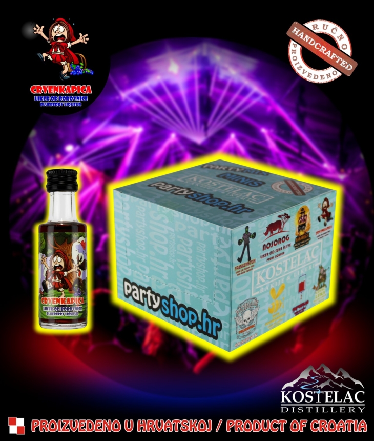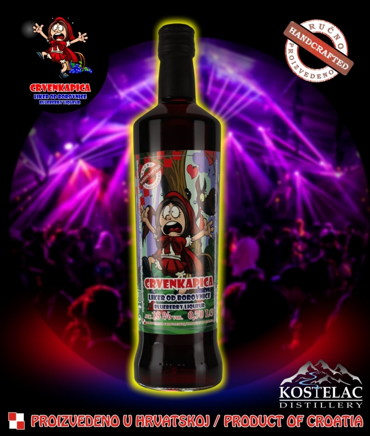 CRVENKAPICA LIKER BOROVNICA – Liker od borovnice CRVENKAPICA potpuno je prirodni, vrhunski liker ručno proizveden prema tradicionalnoj recepturi od šumskih borovnica uz dodatak najkvalitetnijih kupina zbog što bolje aromatičnosti i punoće okusa. Nakon što je voće odležalo puna četiri mjeseca u vrhunskom destilatu, liker se odvaja i stavlja na odležavanje i sazrijevanje. Kako bi se zadržale sve karakteristične arome, nakon minimalno godinu dana sazrijevanja i prirodnog taloženja, u vrhuncu svoje zrelosti, puni se u boce bez prethodnog filtriranja. Zbog visokog udjela voća (min. 50%), na dnu boce moguća je pojava finog taloga, koja je rezultat prirodnog načina proizvodnje. Liker čuvati na hladnom i tamnom mjestu. Servira se ledeno ohlađeno kao samostalno piće ili kao sastavni dio koktela.