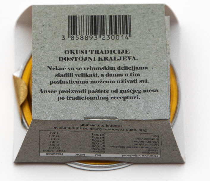 Ukusni i aromatični pate s visokim udjelom guščjeg mesa (32%), pripremljena s biljnim uljem,