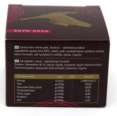 Luksuzni foie gras od 82% guščje jetre, obogaćena dimljenom slaninom, crnim trubačama,