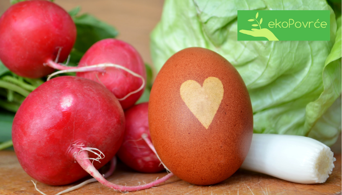 Kršćanski praznik Uskrs dolazi nam u prve proljetne dane, a simbolizira obnovu i novo rođenje. Tradicionalni uskršnji stol ne voli puno eksperimenata pa se na stolu nalazi šunka, slatka pinca, kuglof, a za doručak su nezaobilazna jaja, mladi luk i rotkvice. U vrijeme Uskrsa naš stol je bogat dobrom hranom, šareno obojanim jajima i slatkim kolačima. Jako je važno da uz mesne i slatke delicije na stolu ima i domaćeg povrća. Tradicionalno, od povrća za Uskrs se najčešće na stolu nalazi mladi luk i rotkvice, a bitno je da budu svježe, domaće i naravno od EKOLOŠKOG proizvođača.