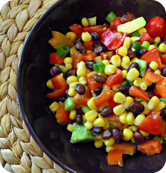 Dodajte kukuruz šećerac i sitno sjeckanu crvenu i zelenu papriku te sve dobro promješajte.