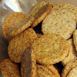 Umijesite tijesto i dodajte brusnice. Razvaljajte, izrežeite krugove i stavite na papir za pečenje. Pecite 15-20 min na 200 °C.