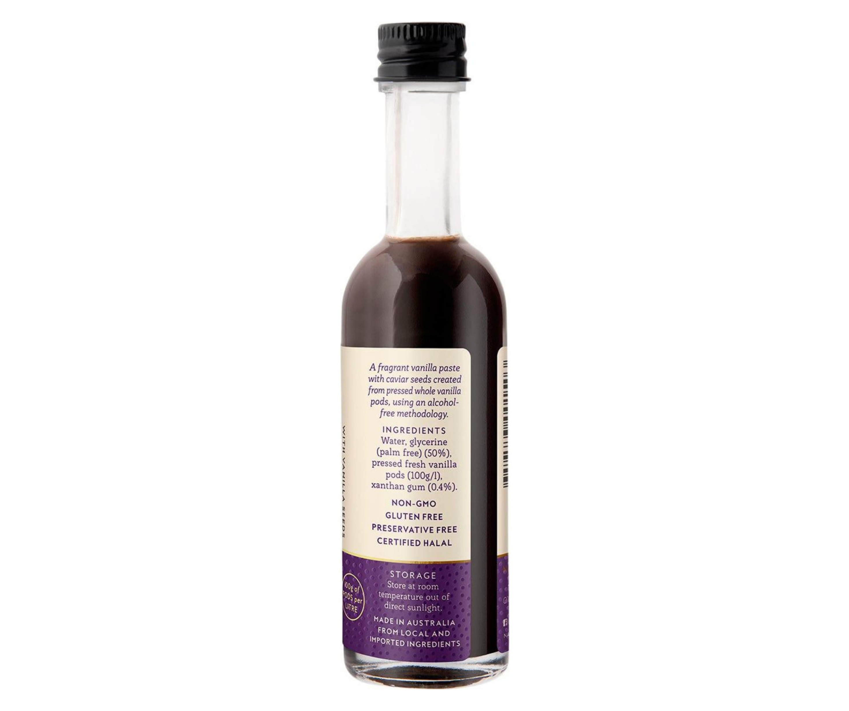 Vrhunska pasta od vanilije stvorena od prešane mahune vanilije jednog podrijetla napravljene metodologijom bez alkohola s intenzivnim okusom vanilije i obilnim sjemenkama vanilije raspršenim posvuda. Certificirani halal. Pasta je najpopularniji proizvod kod slastičarna. Odlična je za pekarske proizvodi, pića, deserti, sladoled, kolači, slastice itd. Najbolji odnos cijene, količine i kvalitete u odnosu su tržišnu cijenu za istu količinu!