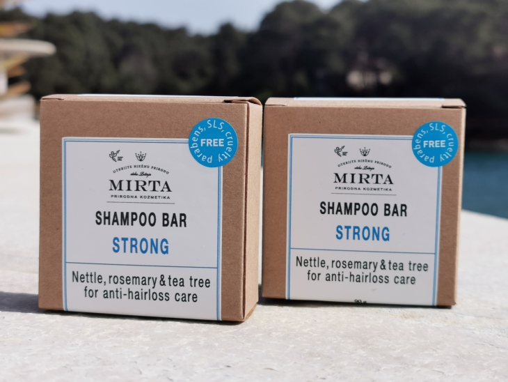 Energetski šampon STRONG je 100% prirodni šampon u krutom obliku koji će ojačati korijen kose, spriječiti njeno ispadanje i potaknuti rast. Strong šampon ne sadrži umjetne boje, mirise, konzervanse, parabene, alkohol, natrijev lauril sulfat, propilen glikol, dietanolamin (DEA) ili bilo koje druge štetne sintetičke dodatke.